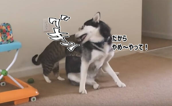 ハスキーと遊びたくてたまらない猫 何度も何度でもタイアタックル 18年2月28日 エキサイトニュース