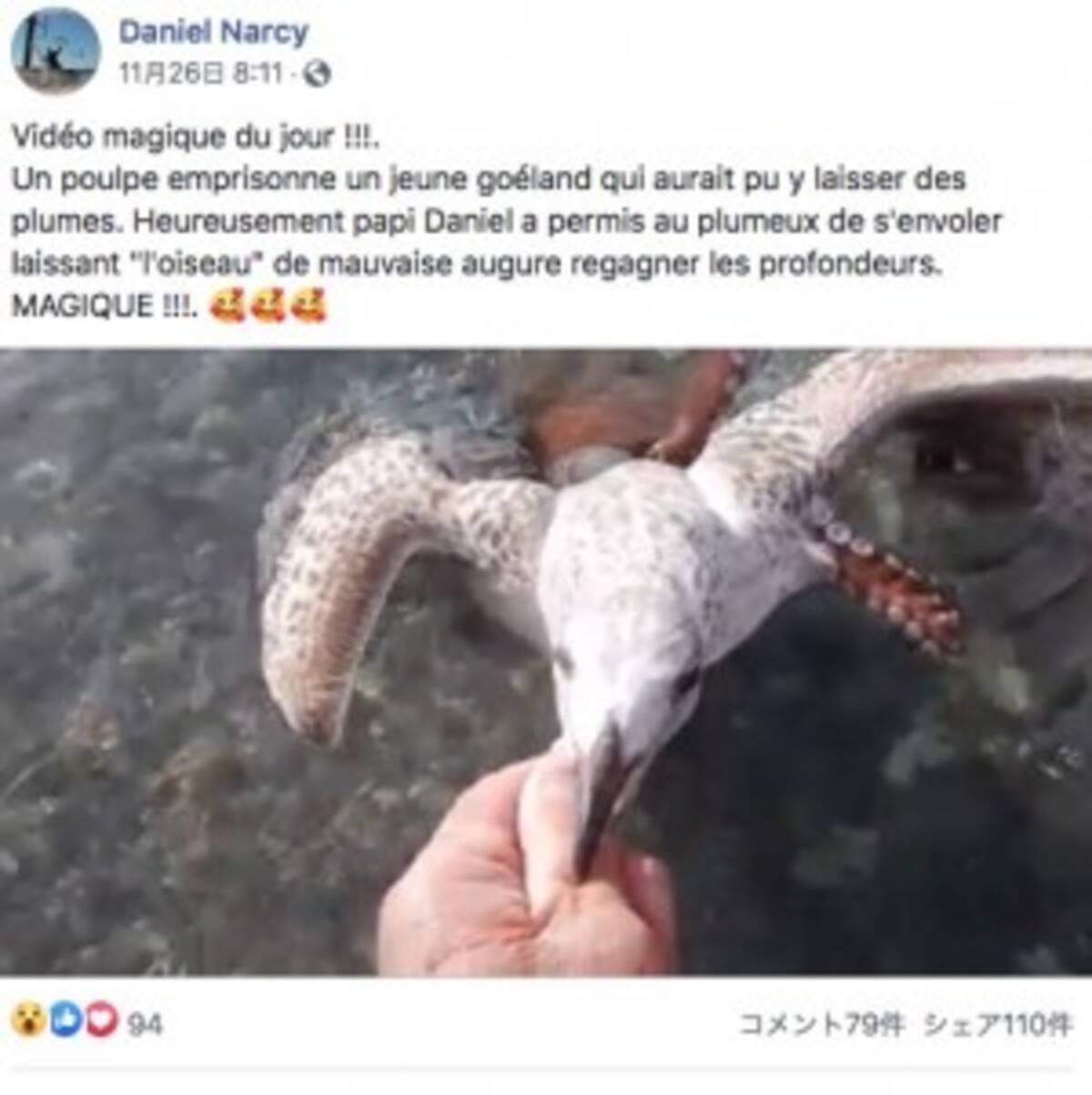 タコに襲われ溺死寸前のカモメを救った男性 この光景は前にも見た 仏 動画あり 年11月29日 エキサイトニュース