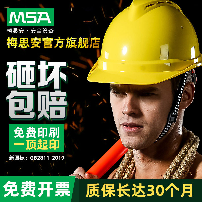 Msa梅思安安全帽印字定制建筑加厚v型劳保头盔工地abs塑料国标帽 阿里巴巴