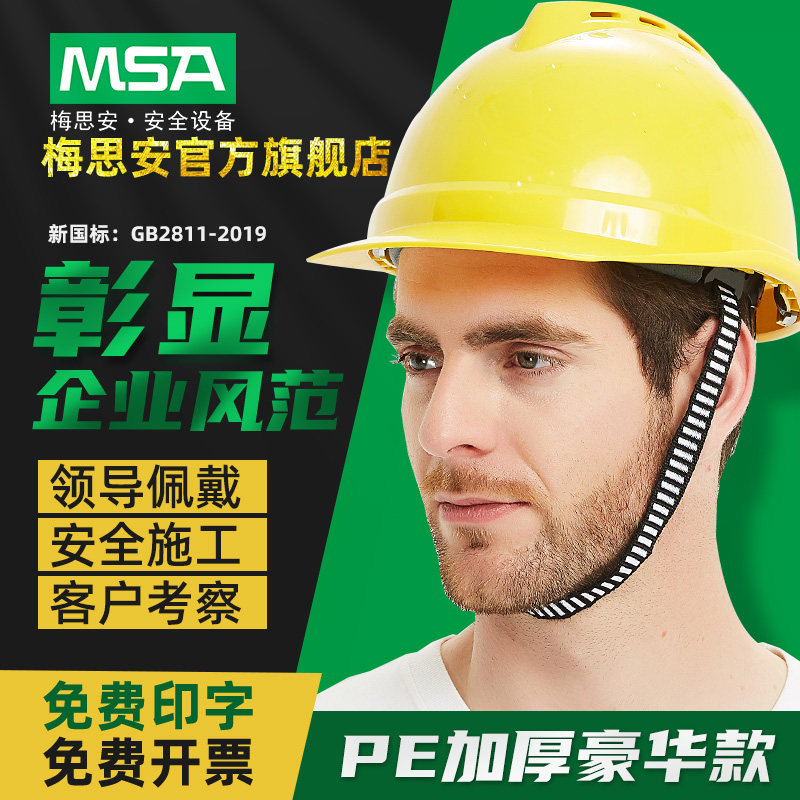 Msa梅思安标准型安全帽 黄色pe帽壳 超爱戴帽衬 针织吸汗带 D型下颏带 价格采购图片 工品优选